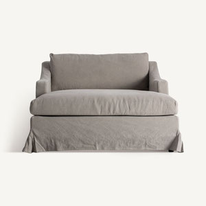 Chaise longue, fabricado en lino en color beige, combinado con algodón y espuma.