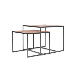 Este completo set está compuesto por dos mesas auxiliares de diferentes tamaños, una más grande y la otra más pequeña, de modo que pueden funcionar de varias formas: una debajo de la otra o por separado de mil posiciones distintas, ¡como tu quieras! Ambas mesitas combinan una estructura de hierro en negro con el sobre de madera de teca reciclada natural, recuperada de antiguas construcciones en desuso en Java, Indonesia, y están trabajadas manualmente por nuestros expertos artesanos. Gracias a su diseño de estilo nórdico son muy versátiles y encajarán genial con cualquier ambiente y tipo de decoración, tanto en tu comedor como en el salón o habitación que desees. Set de dos unidades 60/50 x 55/50 x 50/40 cm FECHA APROXIMADA DE LLEGADAS; 29/12/205 (6 UNIDADES) 30/05/2026 (14 UNIDADES)