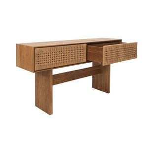 La CORA 106 es una consola de madera única, singular, fabricada con materiales totalmente sostenibles. Contiene 2 cajones y forma parte de la colección CORA, que destaca por su trenzado característico hecho a mano por nuestros expertos artesanos. El tejido de cuerda ecológica de papel, junto a la estructura de teca reciclada natural recuperada de antiguas construcciones en desuso en Java, hacen de esta pieza un aliado perfecto para aquellos amantes del diseño sostenible. Esta consola original y algo vintage, con dos amplios cajones para que puedas mantener el orden en tu casa, es ideal para aportar un toque diferente, la mezcla perfecta entre lo tradicional y lo exótico. Quedará genial combinada con otros muebles de madera, especialmente si completas el look con otro mueble CORA. También con texturas neutras y colores como el blanco o el gris. FECHA PROXIMAS LLEGADAS; 18/02/2026 (1 UNIDAD) 30/05/2026 (11 UNIDADES)