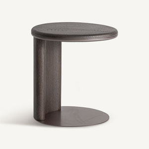 Mesa auxiliar, fabricado en madera dm en color marrón claro, combinado con madera contrachapada en color marrón y hierro.