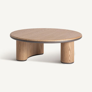 Mesa de centro, fabricado en madera dm en color marrón claro, combinado con madera contrachapada en color marrón.
