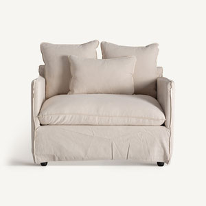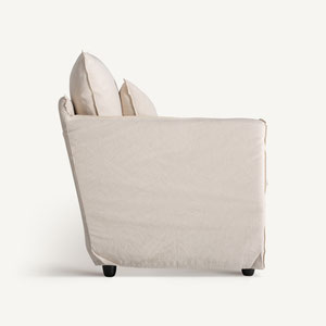 Sillón, fabricado en lino en color beige, combinado con algodón y espuma.