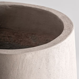 Tinaja, fabricado en cemento en color topo, combinado con fibra de vidrio.