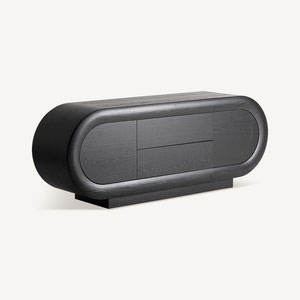 El Aparador Chamonix de VICAL reinterpreta el art déco con líneas redondeadas en roble marrón.
