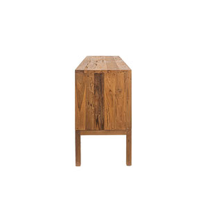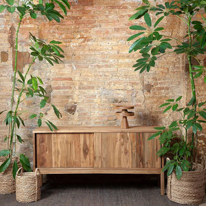 El aparador EROSI 160 Nat destaca por su adaptabilidad a cualquier espacio y un estilo decorativo verdaderamente auténtico. Un aparador horizontal de madera de teca reciclada natural y estilo rústico, líneas rectas y puertas correderas de estilo japonés, detrás de las cuales se esconde una cómoda y funcional balda, también de madera de teca. Pertenece a la familia EROSI, que se caracteriza por el uso de materiales nobles y sostenibles embellecidos por las inconfundibles marcas de la erosión del tiempo. Un aparador de madera de teca recuperada de antiguas construcciones en desuso de Indonesia, lo cual le aporta esa personalidad tan auténtica, a pesar de la sencillez de su diseño. El complemento versátil y funcional perfecto, que podrás utilizar en cualquier estancia. FECHA APROXIMADA DE LLEGADA 30/05/2026 (7UNIDADES)