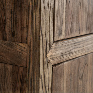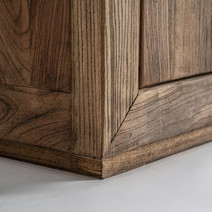 El armario Norvik de VICAL está fabricado en madera de olmo marrón. Un diseño imponente que aporta calidez y fuerza natural al espacio.