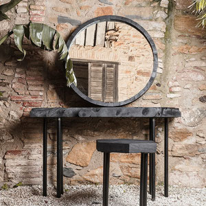Esta consola de madera es sinónimo de elegancia y naturaleza. Un homenaje a las raíces, un pedacito de bosque hecho mueble. La ROOT BLACK está construida con una sola pieza de raíz de teca con un acabado rústico y en color negro, pintada con la técnica de pulverizado, igual que sus estilizadas patas de hierro. Las características formas irregulares y vetas derivadas de la propia madera hacen que cada consola ROOT sea irrepetible. Sobria, exclusiva y elegante, la ROOT combina a la perfección diseño y funcionalidad, y se adaptará para complementar todo tipo de estilos, de clásico a moderno. Ideal para tu recibidor, para sorprender con solo entrar en casa, o para cualquier pasillo al que se le quiera dar un toque único y diferente. FECHA PROXIMA LLEGADA 30/05/2026 (22 UNIDADES)