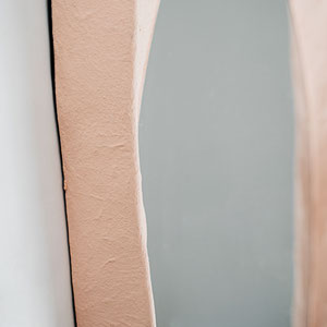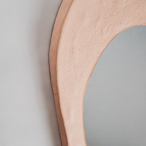 Espejo Budel de estilo contemporáneo, fabricado en resina en color rosa.