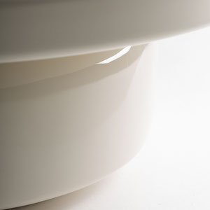 Mesa de centro Gory de estilo contemporáneo, fabricado en madera dm en color crema, combinado con fibra de vidrio.