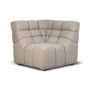 Una pieza muy funcional gracias a la posibilidad de unir diferentes módulos, el rinconero CHOPIN Nat te permitirá crear un sofá de magníficas dimensiones. Un módulo rinconero de gran confort y durabilidad, con relleno en espuma de alta calidad y tapizado con Rolefin en color claro. Rolefin es un tejido de hilo reciclado certificado por el Global Recycled Standard y es un material 100% sostenible cuya confección no consume agua, lo cual protege nuestro medio ambiente. Además, los pigmentos utilizados para tintar el tejido no contienen plomo. Perfecto para combinar con cualquiera de los módulos de la misma familia y crear un espacio inspirador en salones amplios. Fecha próxima llegada aproximada; 20/12/205 (7 unidades)