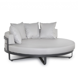 CAMA REDONDA "LAGOS" DE ARKIMUEBLE Elegante, contemporanéo y espacioso, ideal para terrazas y jardines. Estructura de aluminio antracita termolácado, un material ligero, resistente a la intemperie y de fácil limpieza