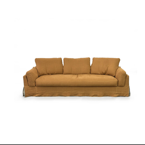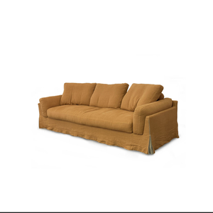 SOFÁ "TRIPOLI" DE GRASSOLER Estructura metálica pintada anticorrosión, recubier- ta de polieter, Totalmente desmontable (sin herra- mientas). Suspensión independiente para cada plaza. Bastidor de acero fâcilmente extraible, con posición horizontal o inclinada mediante cinchas Nea Elástica. Cojín asiento de fibra antiálergica, en la parte superior y frontal, inserto de polieter de 35kg/m3 con contro- lador de arrugas. Respaldo Cojín receptor de polieter de 25kg y 23, cojín respaldo de altura 60 cm 100% fibra antialérgica con rulo de 12cm. Brazos cojin de fibra 100% con inserto de polieter de 35kg/m3. Tapi- zado totalmente desenfundable para fácil enfundado y su lavado en lavadora en las telas que lo permitan. Largo: 274cm